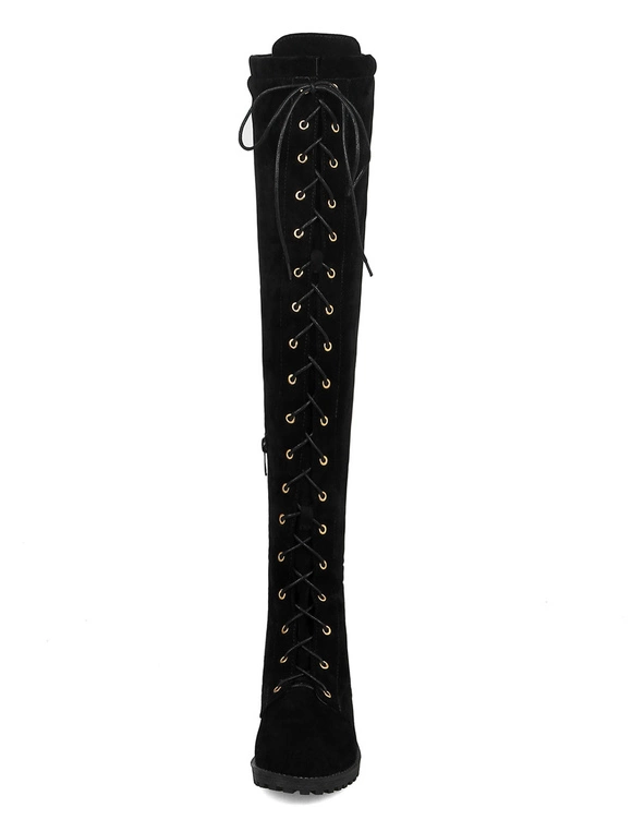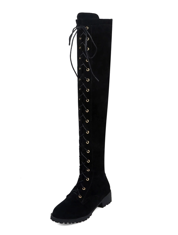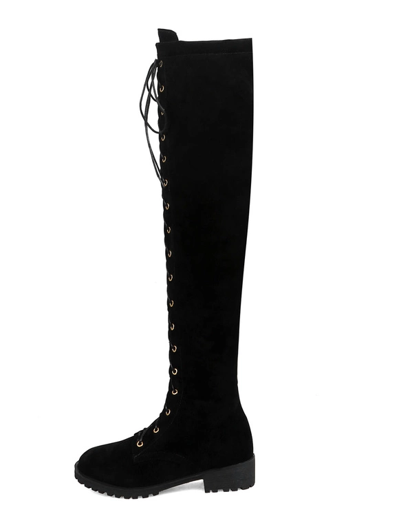 Be the first to review “Thigh High Boots Womens Micro Suede Lace Up Round Toe Chunky Heel Over The Knee Boots” Cancel reply