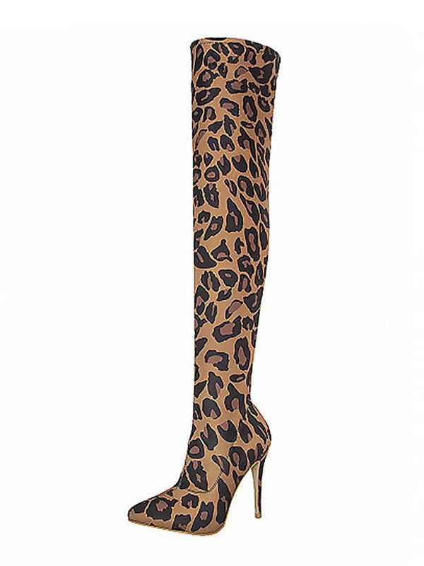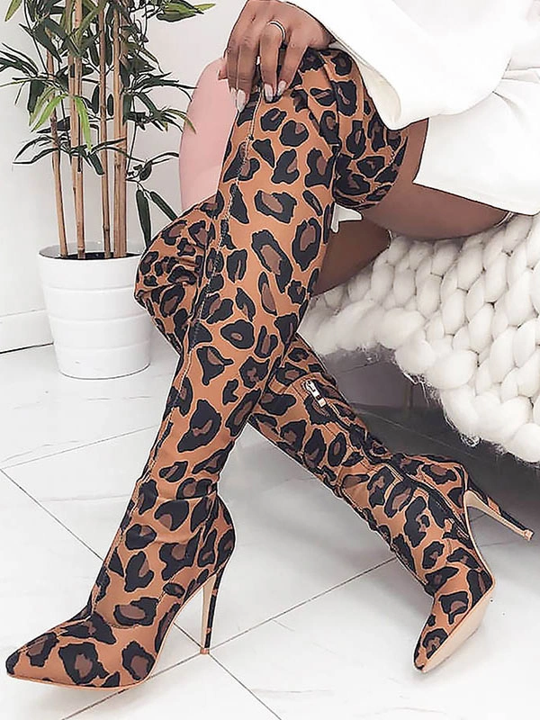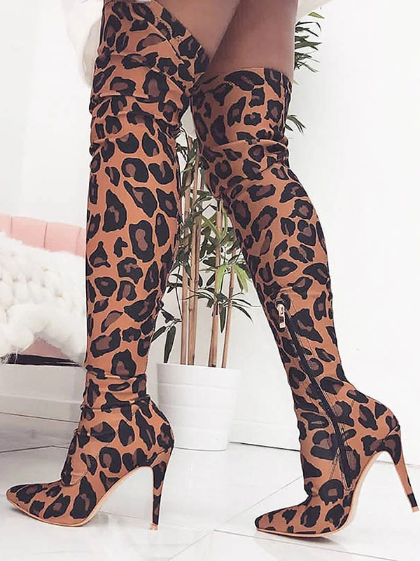 Be the first to review “Thigh High Boots Womens Micro Suede Leopard Print Pointed Toe Stiletto Heel Over The Knee Boots” Cancel reply