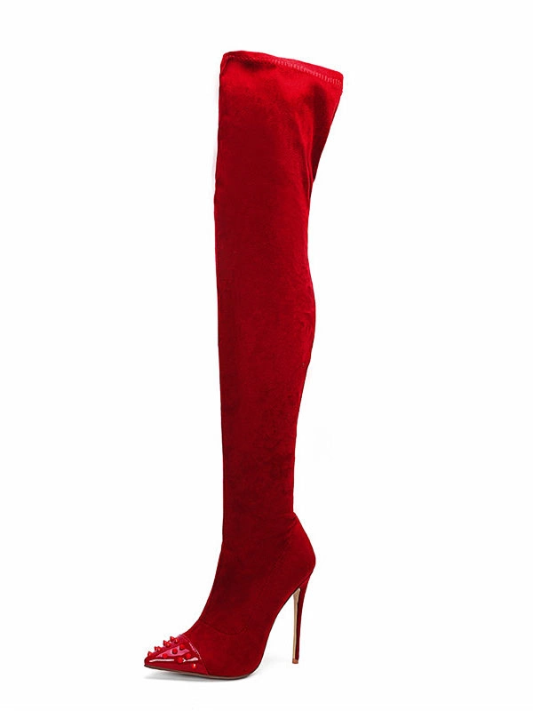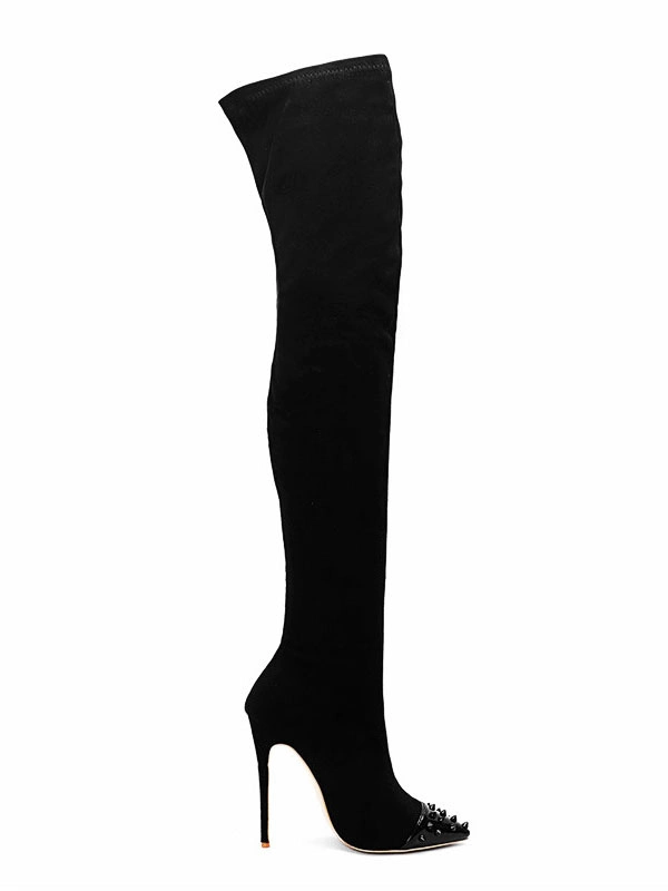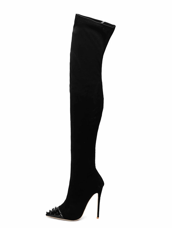 Be the first to review “Thigh High Boots Womens Micro Suede Rivets Pointed Toe Stiletto Heel Over The Knee Boots” Cancel reply