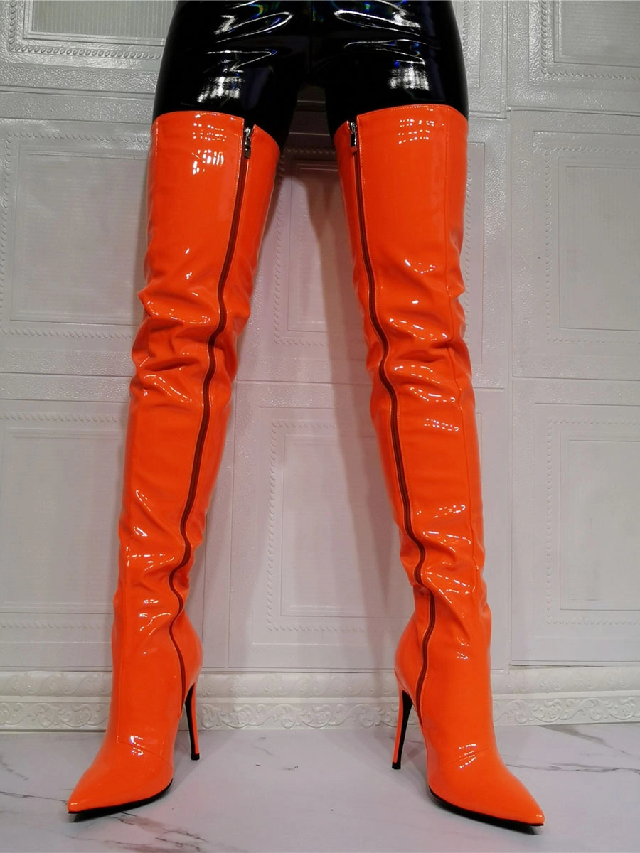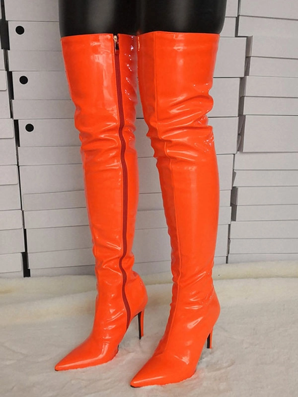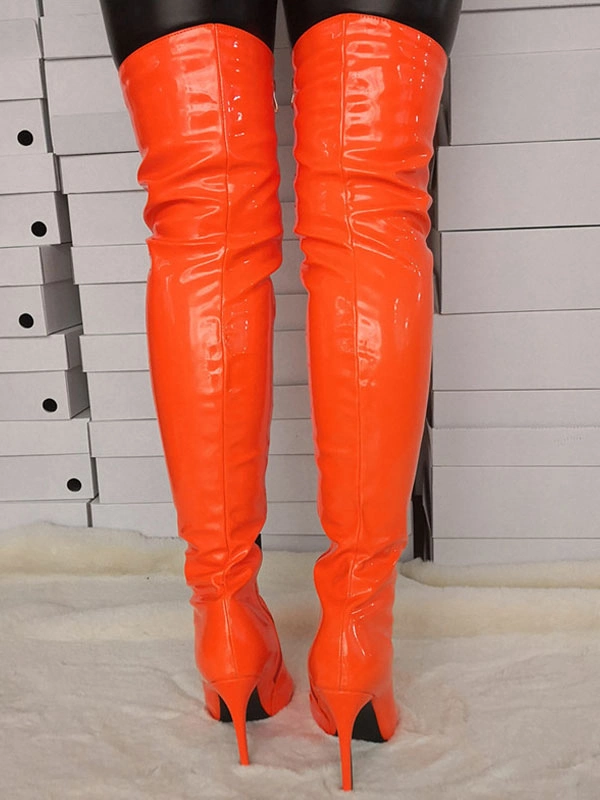 Be the first to review “Thigh High Boots Womens Solid Color Pointed Toe Stiletto Bright Leather Heel Over The Knee Boots” Cancel reply