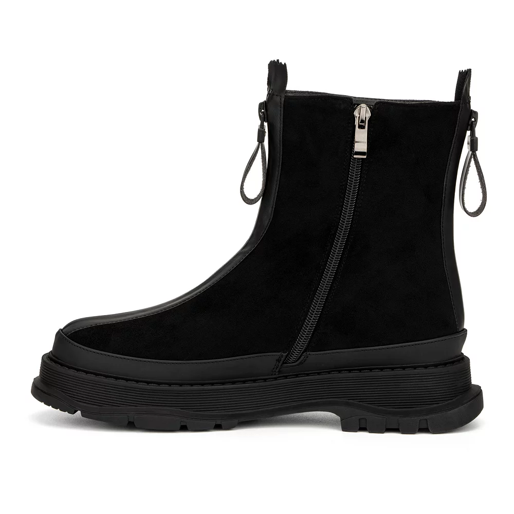 - Stylish faux suede with faux leather details