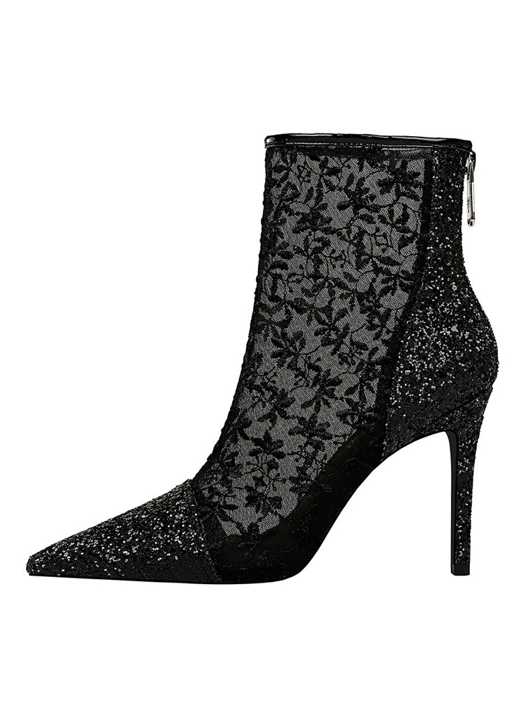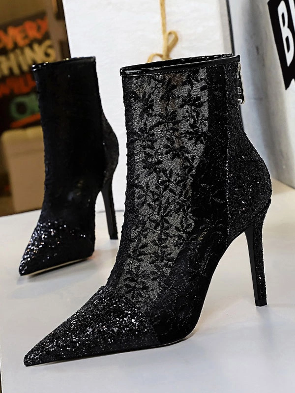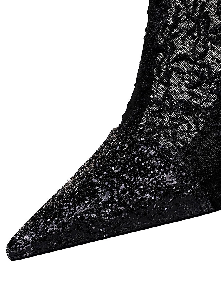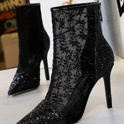 Be the first to review “Women Ankle Boots Black Lace Pointed Toe Sequins Stiletto Heel High Heel Booties” Cancel reply