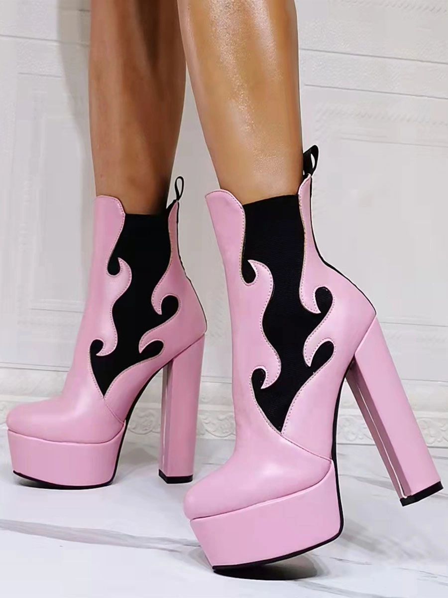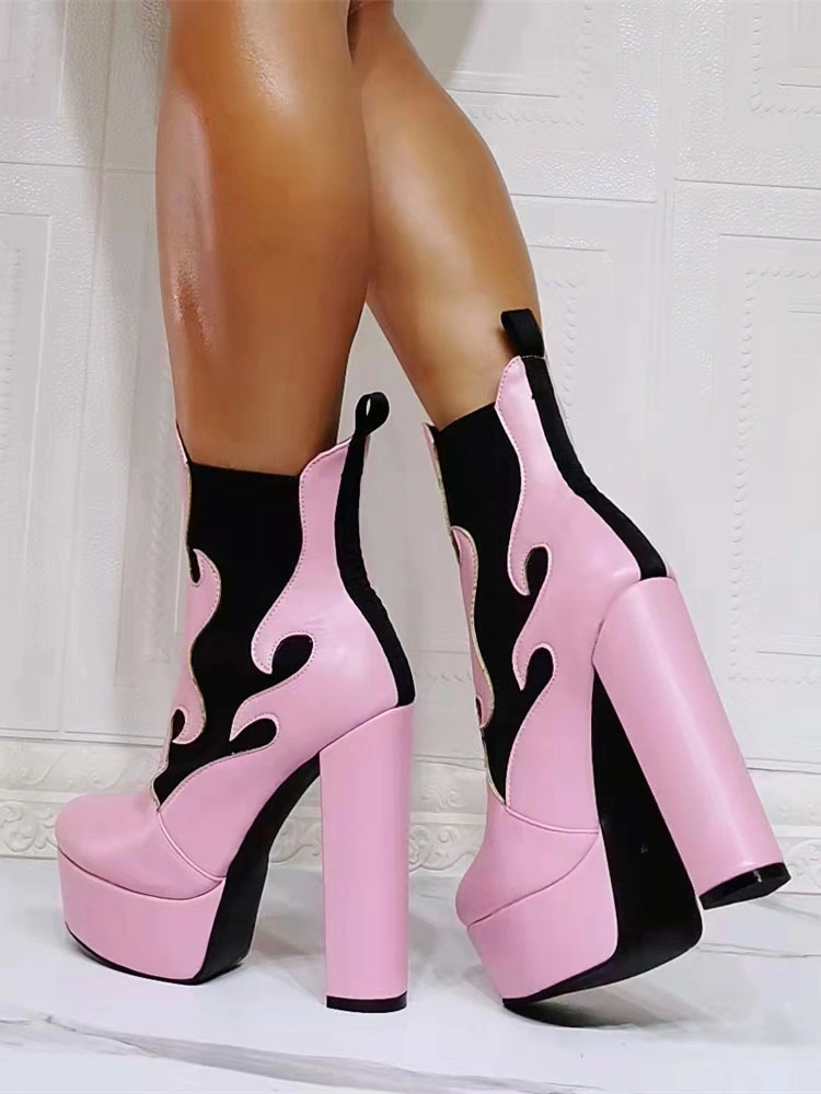 Be the first to review “Women Booties Geometric Round Toe Platform Chunky Heel PU Leather High Tops Pink Ankle Boots” Cancel reply