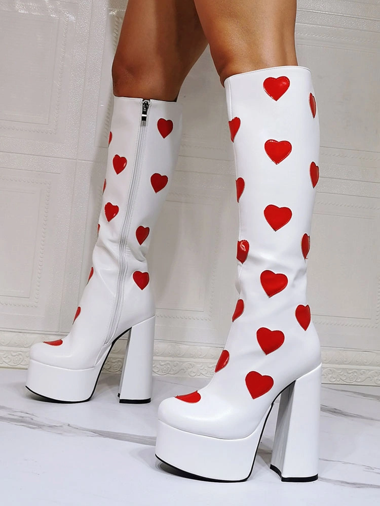 Be the first to review “Women Boots Heat Pattern Plus Size Platform Round Toe Chunky Heel White Knee High Boots” Cancel reply