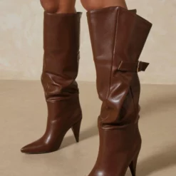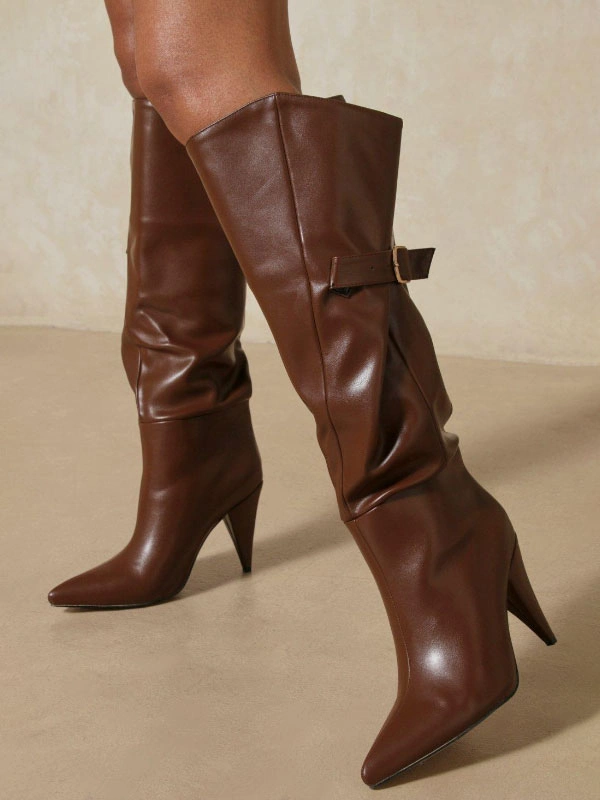 Be the first to review “Women Boots Stiletto Heel Pointed Toe PU Leather Chocolate Brown Knee-High Boots” Cancel reply