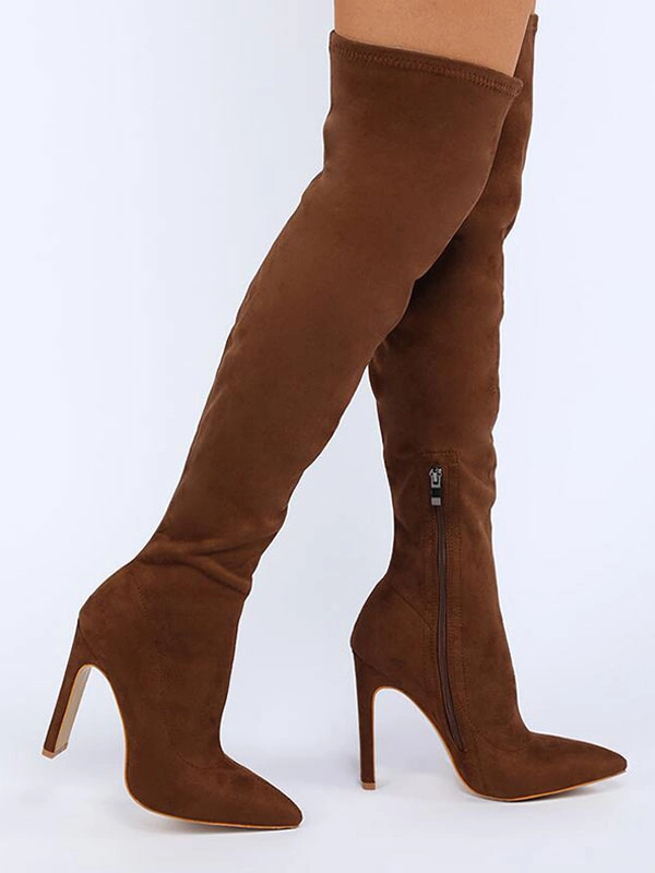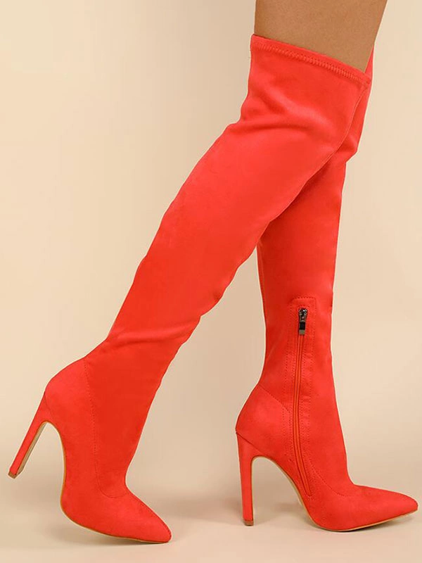 Be the first to review “Women Over The Knee Boots Chunky Heel Elastic Fabric Orange Thigh High Boots” Cancel reply