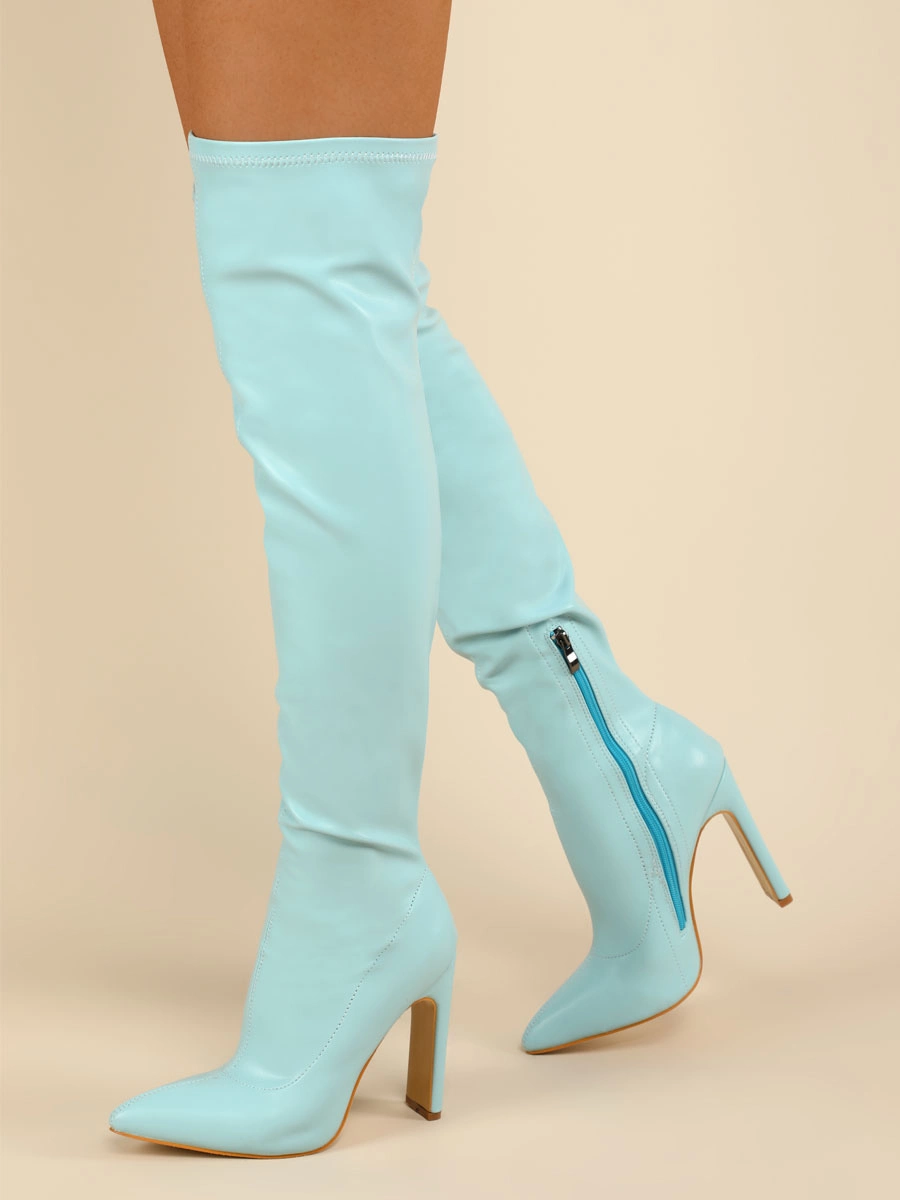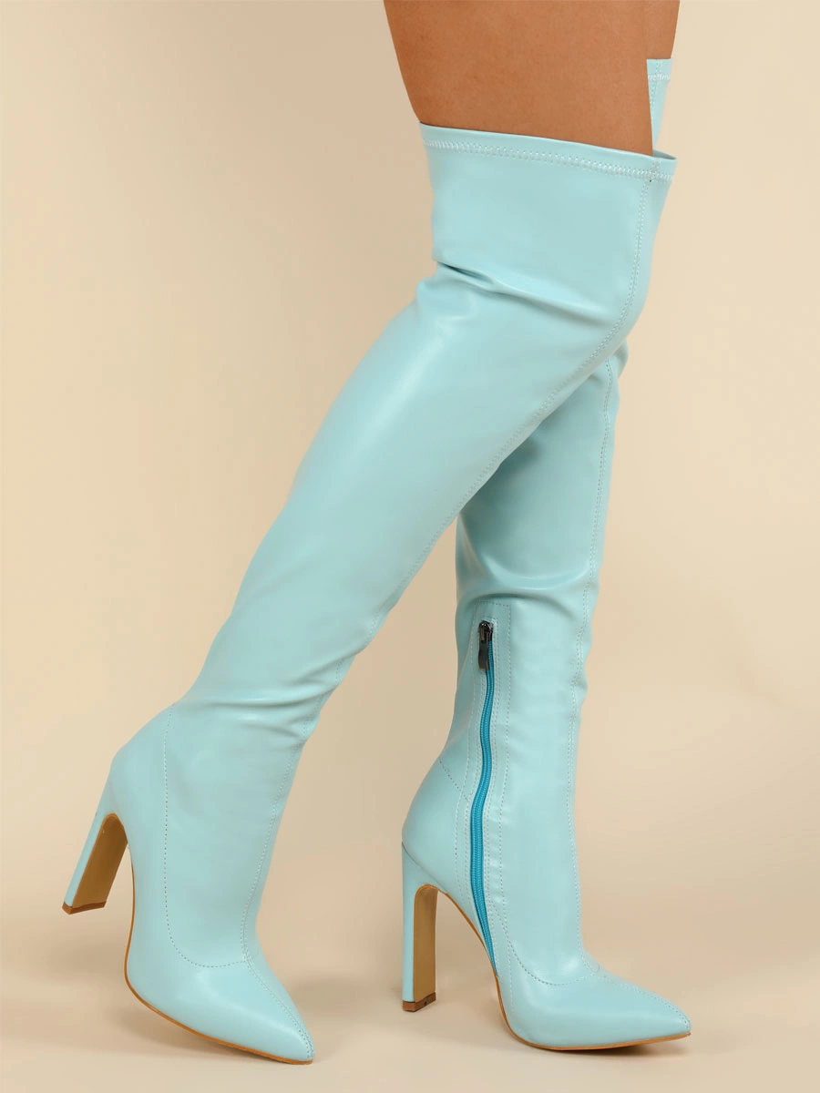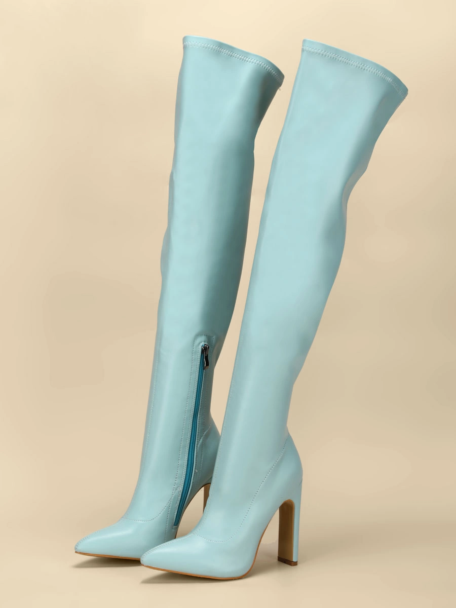 Be the first to review “Women Over The Knee Boots Chunky Heel Point Toe PU Leather Blond Thigh High Boots” Cancel reply
