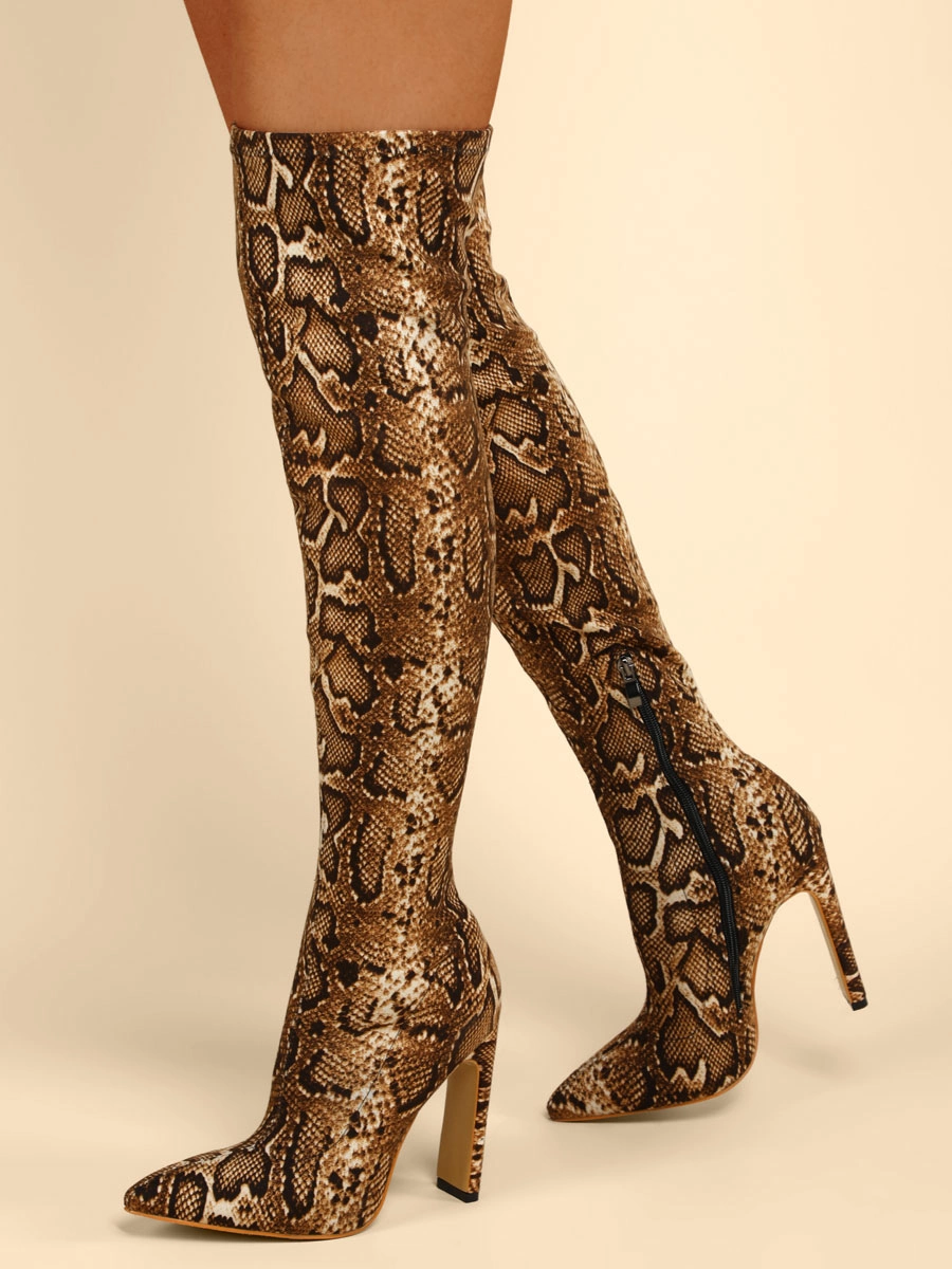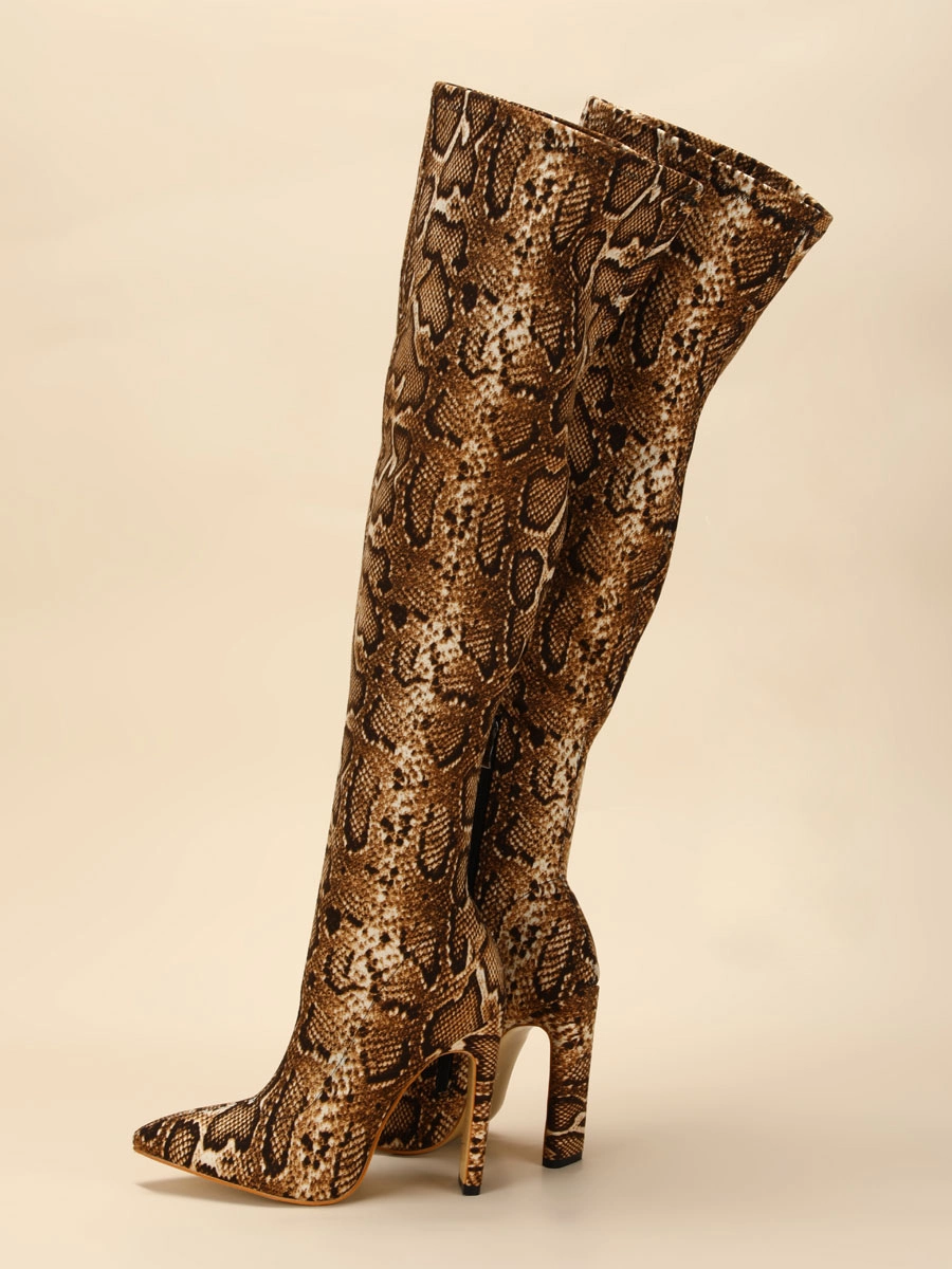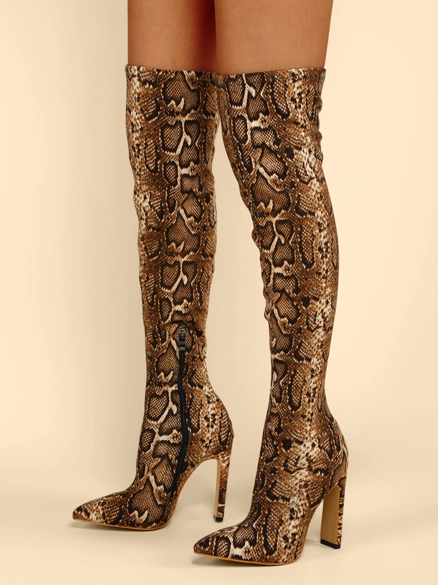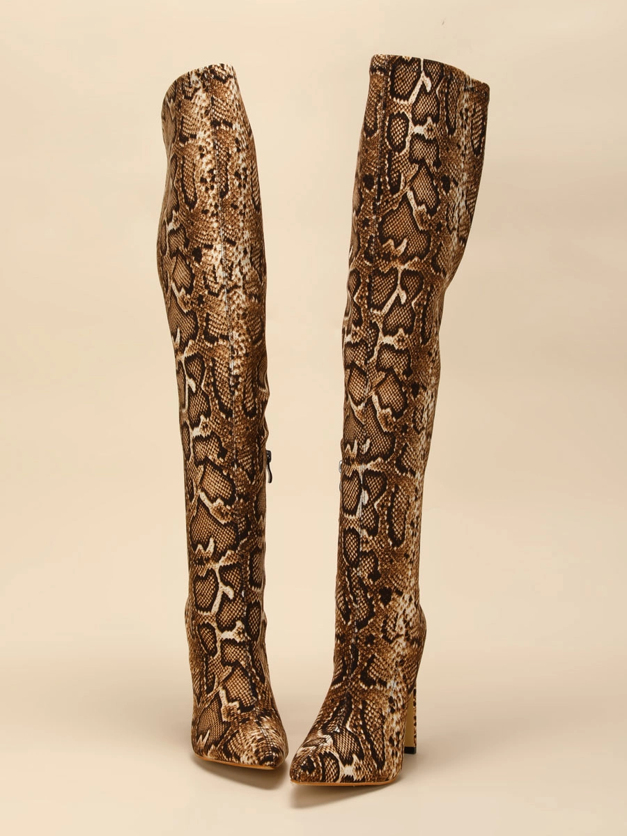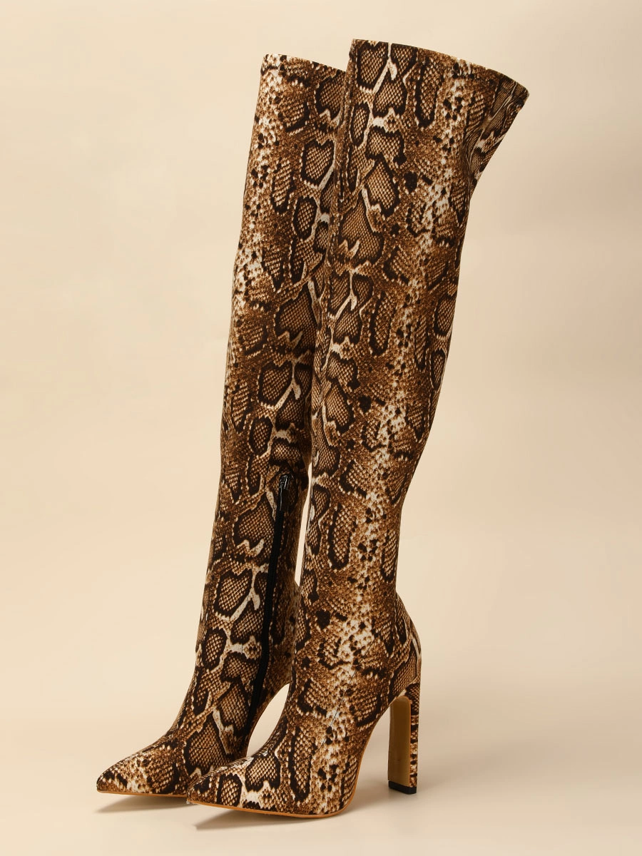 Be the first to review “Women Over The Knee Boots Chunky Heel Pointed Toe Snake Print PU Leather Thigh High Boots” Cancel reply