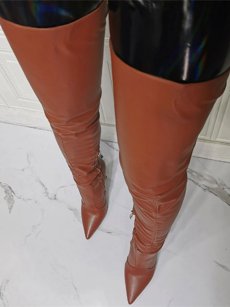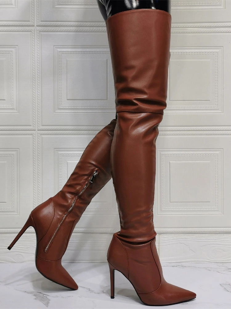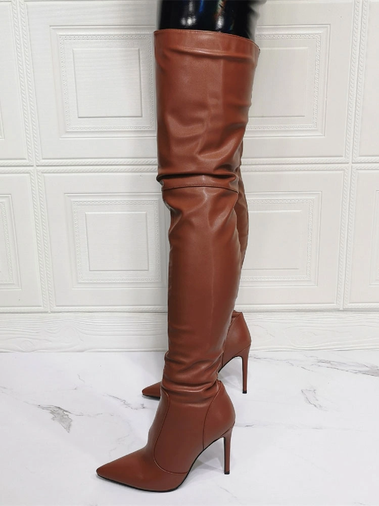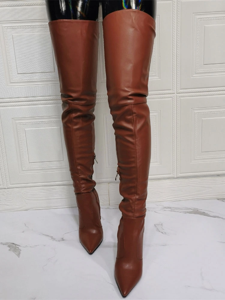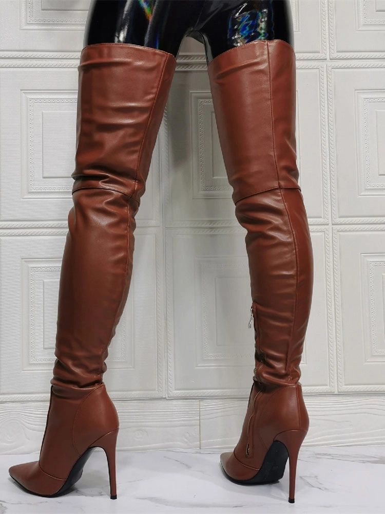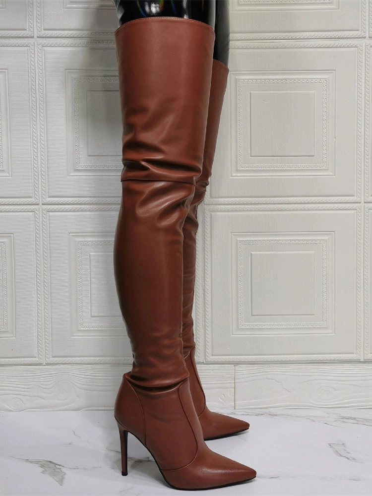 Be the first to review “Women Over The Knee Boots Plus Size Stiletto Heel PU Leather Coffee Brown Thigh High Boots” Cancel reply