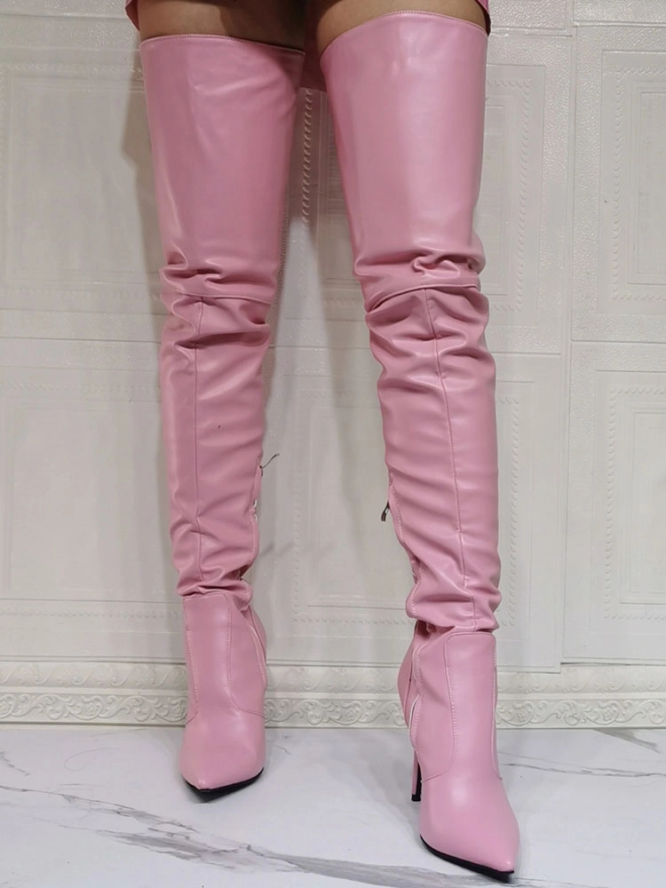 Be the first to review “Women Over The Knee Boots Plus Size Stiletto Heel PU Leather Pink Thigh High Boots” Cancel reply