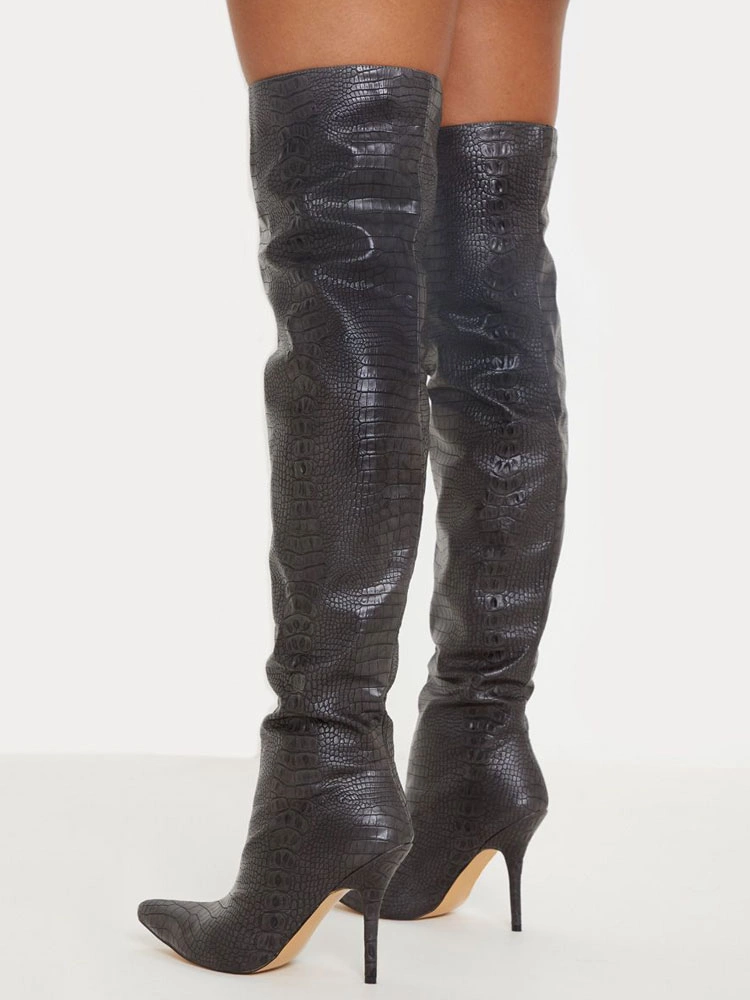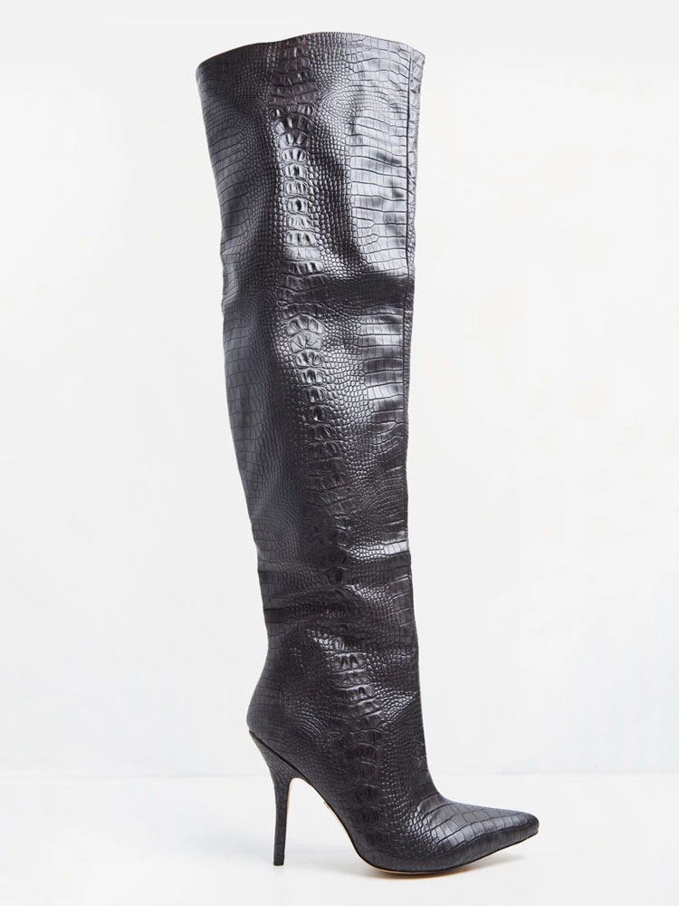 Be the first to review “Women’s Alligator Embossed Thigh High Heel Boots Black” Cancel reply