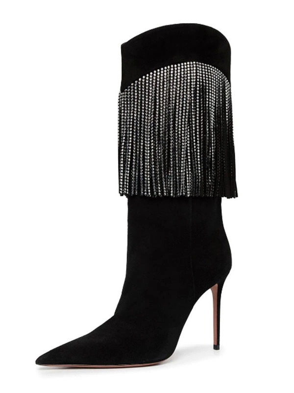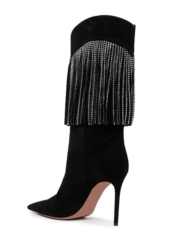 Be the first to review “Women’s Knee High Boots Black Suede Rhinestones Pointed Toe Stiletto Heel Boots” Cancel reply
