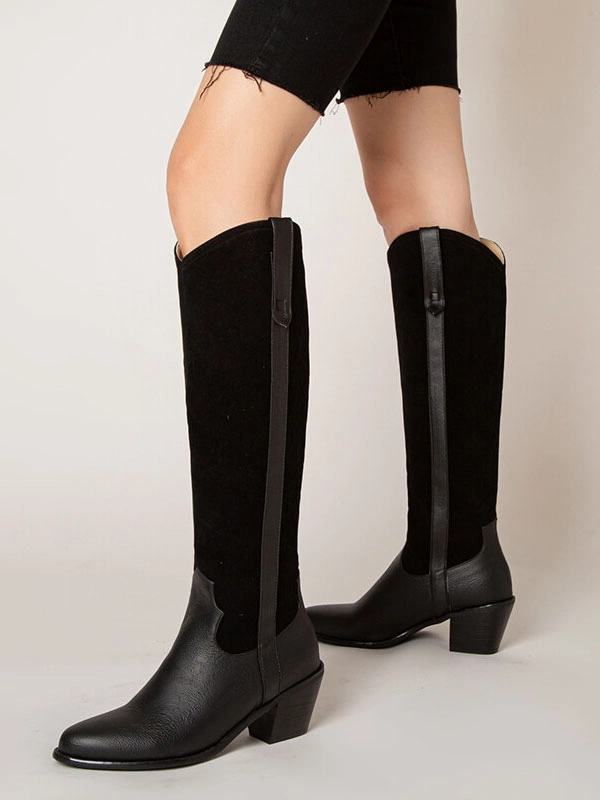 Be the first to review “Women’s Western Boots Patchwork Chunky Heel Knee High Boots” Cancel reply
