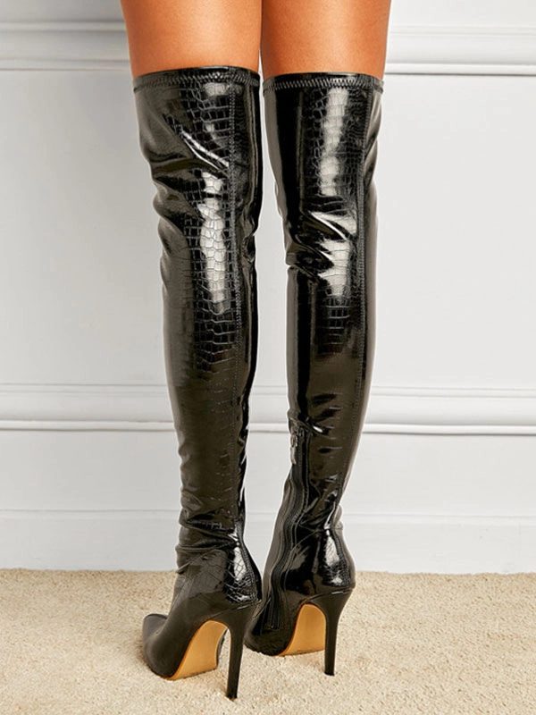 Be the first to review “Women Stiletto Heel PU Leather Over The Knee Black Thigh High Boots In” Cancel reply