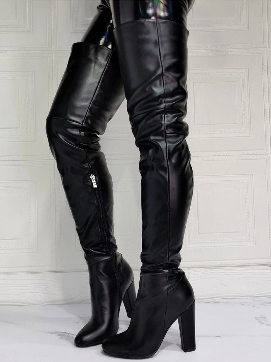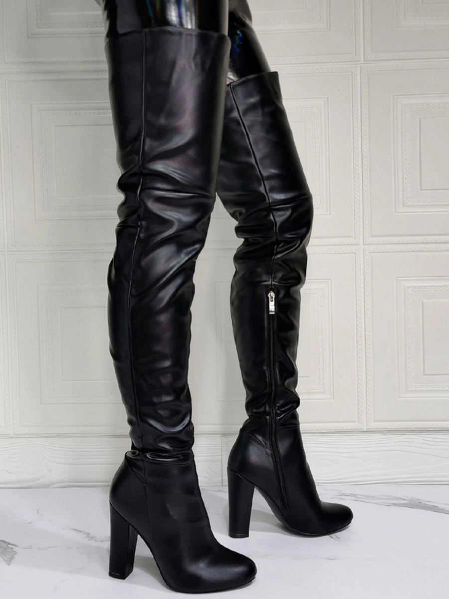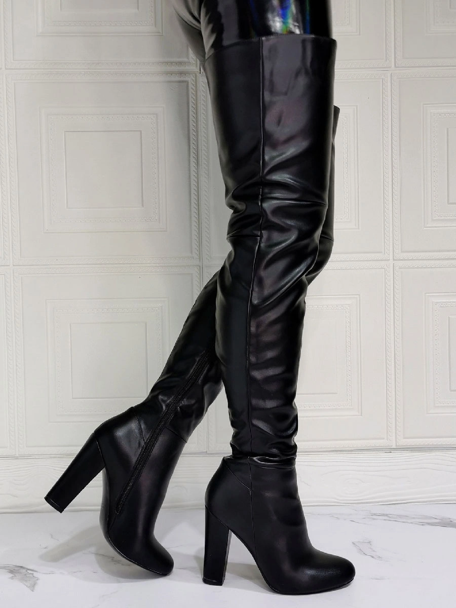 Be the first to review “Women Thigh High Boots PU Leather Black Sky High Chunky Heel Over The Knee Boots” Cancel reply